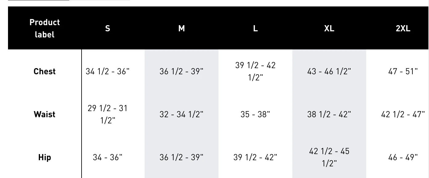 | Size | Small, Medium, Large, X-Large, 2X-Large |