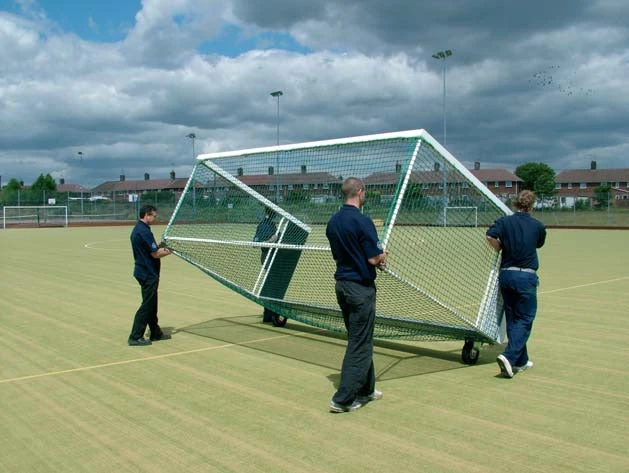A: These trolleys were designed to be used for portable football goals made from our Euro section. They have not been tested for use on Aluminium Hockey Goals and although they will support the weight and the goals will fit onto the trolleys, we cannot recoMMend using them for this purpose.