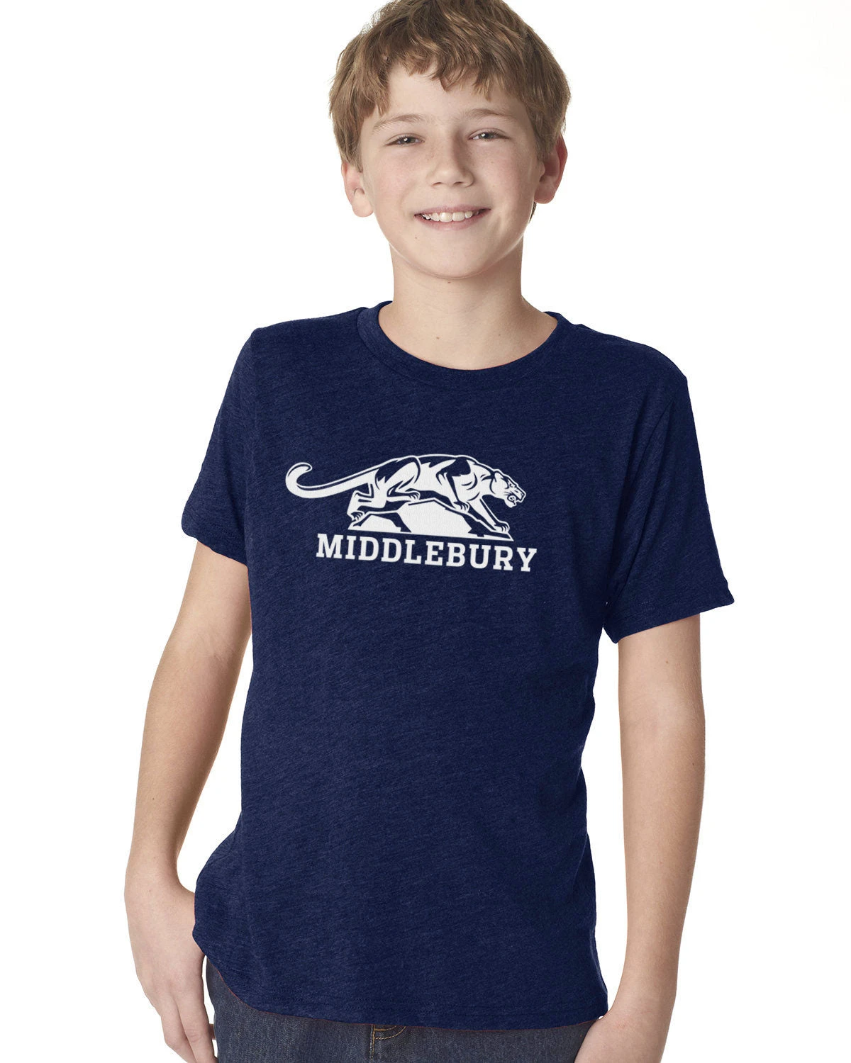 Jerzees Brand Middlebury YOUTH Panther T-Shirt (cotton/poly – Navy)