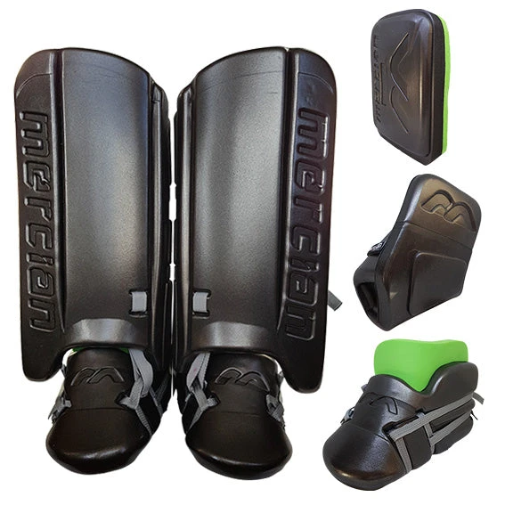 The optimum combination of weight, protection and rebound for beginner, intermediate, junior and adult goalkeepers. The kickers feature a new internal strapping system meaning that the straps are permanently attached to the kickers. The legguards feature a smooth, rounded outer face to help with technical skills such as smothering and diving. British manufactured equipment made from lightweight high-density foam combinations, with good protection levels and high rebound characteristics represent very good value for money. Available as a set or as separate elements.
