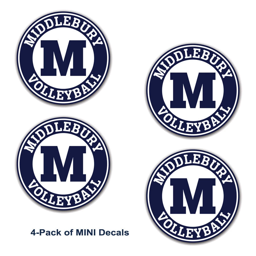 Middlebury Volleyball Decals. Stickers will last for years in all weather elements and will stick to virtually anything with a smooth surface.